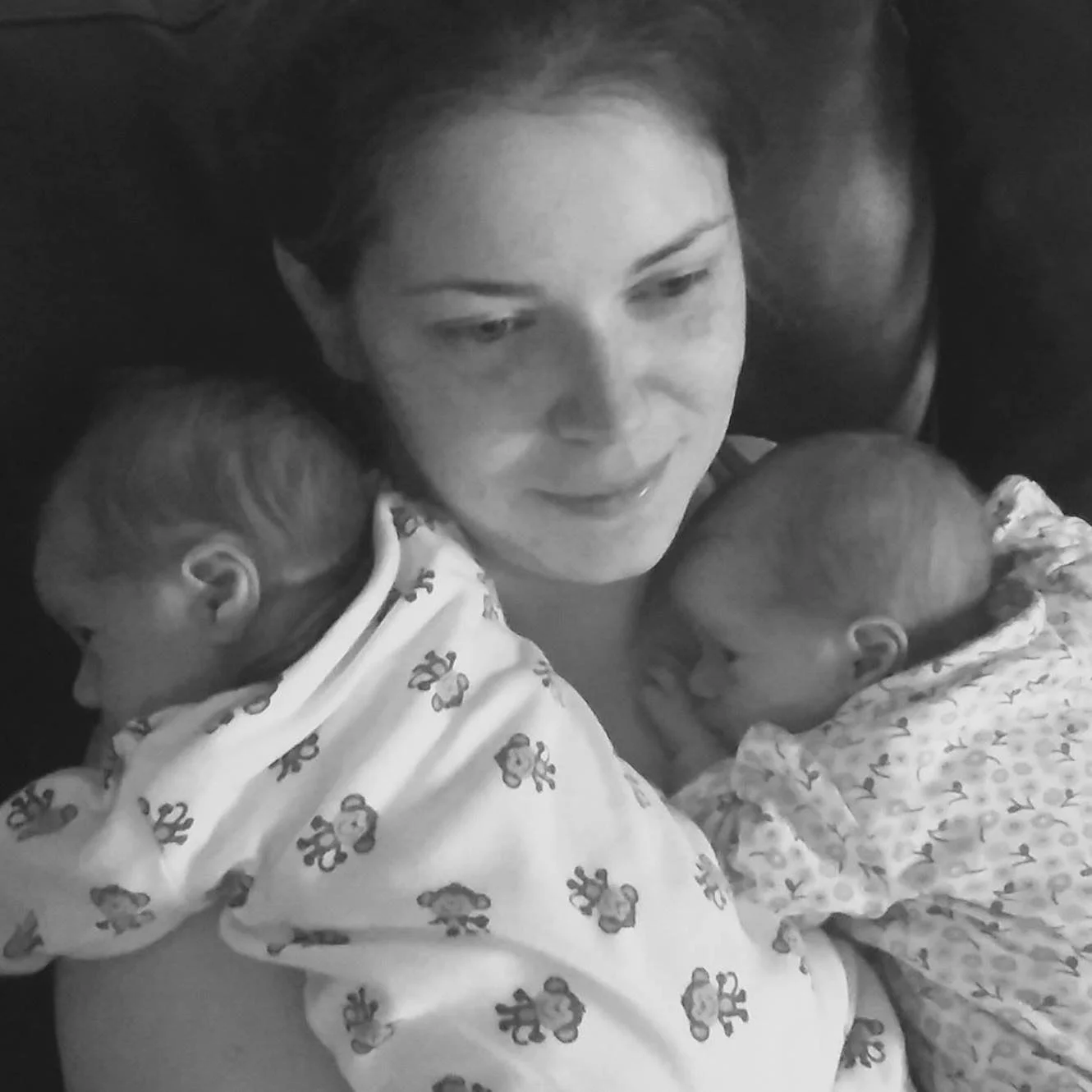 Tina & her twin girls when they were newborns